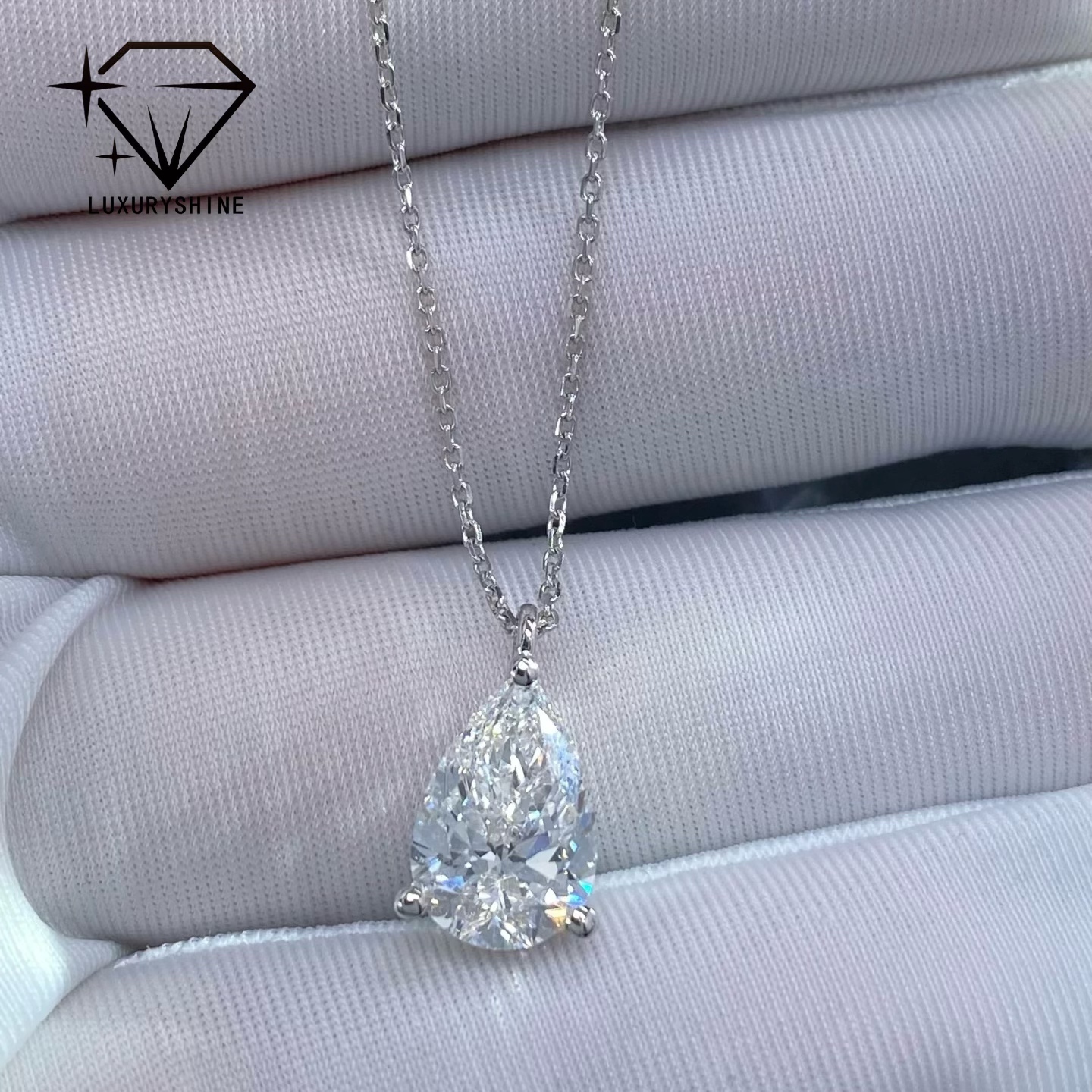برجسته کردن: | گردنبند الماس گلابی پرورشی آزمایشگاهی,گردنبند الماس طلا 18K,جواهرات الماس با وضوح VVS-VS,18K gold diamond necklace,VVS-VS clarity diamond jewelry |
